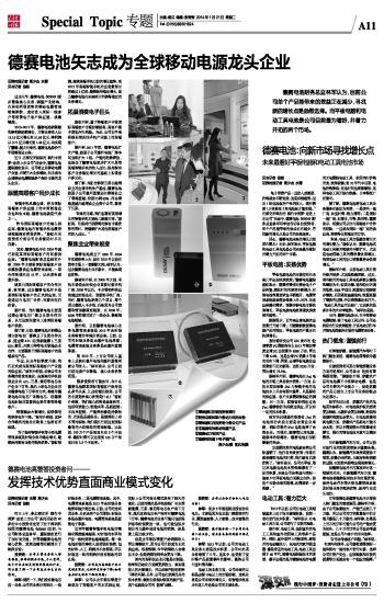 德赛电池矢志成为全球移动电源龙头企业 2014-01-21 来源:证券时报网 作者:周少杰 水菁