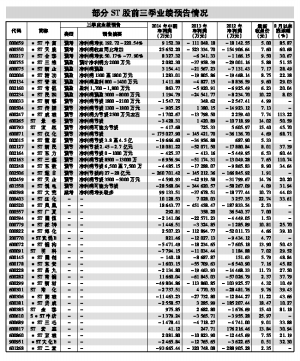 (专题数据由证券时报中心数据库提供,数据来源于上市公司公告,若有出入,请以公告为准) 随着三季度业绩预告的逐渐披露,部分ST股也相继预告了业绩成绩单。数据统计,沪深两市有14家ST公司三季度业绩预告依然亏损,距离退市又近了一步。 据统计,目前两市已公布三季度业绩预告的24家ST股中,3家预增、6家预盈、14家预亏、1家减增。包括*ST 新民、*ST 东力、*ST三鑫、*ST仪化、*ST东数、*ST天业、*ST超日、*ST锐电在内的8家公司在2012年、2013年年度已连续两年亏损,且今年中报、三季度业绩预告继续亏损,若这8家公司年底仍不能扭亏,将面临暂停上市的命运。而*ST中富、*ST天威、*ST精功、*ST普林等9家公司在三季度预计将实现盈利,有望摘帽。 虽然ST股三季度业绩预告普遍不佳,但是ST板块市场表现靓丽。8月以来该板块整体涨幅高达42%,远远高于同期上证指数8.23%的涨幅。(陈建如) 本版导读: