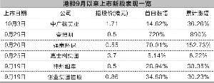 证券时报记者 李明珠 香港新股承接节前走强气势,募资少、股价低的新股颇得市场青睐,上市后均有不错表现,统计数据显示,9月至今港股市场的新股,6只新股首日表现均有不同程度的上涨,带动港股新股市场继续呈现良好氛围。 升幅最高的壹照明,虽然仅仅给专业机构投资者配售,但是截至10月8日,升幅累计达到890%,排名第二的强泰环保,上市首日涨幅超70%后,累计涨幅也超越150%,此外,神州租车以及创业集团控股的累计涨幅也超过30%,3日挂牌的中广核美亚也赶上了这波热潮,4天涨幅接近40%,散户对于新股的追捧热情不减。 而国庆节后招股的新股超额认购情况普遍,地基承建商三和建筑7日截止招股,市场消息指其超购逾600倍,以公开发售额1500万港元计,即冻资90亿港元;雅骏公开部分亦超购超过200倍,两者都须回拨一半发行股份予申购散户。衍生集团的孖展认购也延续强势,公开发售部分超额认购534倍。 统计数据显示,截至9月30日,不包括创业板转在主板的上市交易,香港总共有83家公司实现IPO,集资金额达到1313亿港元,和2013年前三季度的43只新股上市集资额606亿港元相比,分别上升93%和117%,前三个季度香港上市新股的总数创下了过去10年以来的新高。 就8月份和9月份上市的新股来看,13只新股仅有2只首日下跌,其余全部上涨,港股市场细价股(发行数量较少的新股)涨幅首当其冲,壹照明首日狂飙7倍以外,冠辉保安和朝威控股首日均有330%以上的涨幅,港银控股也有250%的升幅,使得打新投资者赚得不少银子。 德勤中国全国上市业务组联席合伙人欧振兴指出,在6月至8月期间,新股集中上市,分散了投资者对个别新股的兴趣和意愿,因此前三季度,只有72%的新股获得超额认购,比去年同期有所下降,而随着IPO情况在9月得到改善,投资者意愿有望在沪港通正式启动之后有所上升。 德勤研究还指出,虽然香港股市近期内因目前的政治活动变得波动,但是影响为短期,稍后公布的中国内地经济数据,来自四中全会和年度中央经济工作会议的潜在宏观政策、规范地方债务和降低杠杆比率措施的效力,以及对美国加息的期望等因素,将会影响新股上市的氛围。 截至9月底,在全球主要交易所新股集资排行上,香港交易所排名第四,位于纽约证券交易所、伦敦交易所和纳斯达克之后。德勤预计,假设第四季度没有发生重大事件影响股市,香港有望争取成为2014年第三大募资金额上市地。 本版导读: