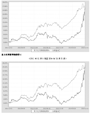 基金管理人:易方达基金管理有限公司 基金托管人:中国建设银行股份有限公司 送出日期:二〇一五年三月二十七日 §1 重要提示 基金管理人的董事会、董事保证本报告所载资料不存在虚假记载、误导性陈述或重大遗漏,并对其内容的真实性、准确性和完整性承担个别及连带的法律责任。本年度报告已经三分之二以上独立董事签字同意,并由董事长签发。 基金托管人中国建设银行股份有限公司根据本基金合同规定,于2015年3月23日复核了本报告中的财务指标、净值表现、利润分配情况、财务会计报告、投资组合报告等内容,保证复核内容不存在虚假记载、误导性陈述或者重大遗漏。 基金管理人承诺以诚实信用、勤勉尽责的原则管理和运用基金资产,但不保证基金一定盈利。 基金的过往业绩并不代表其未来表现。投资有风险,投资者在作出投资决策前应仔细阅读本基金的招募说明书及其更新。 本年度报告摘要摘自年度报告正文,投资者欲了解详细内容,应阅读年度报告正文。 本报告中财务资料已经审计。普华永道中天会计师事务所(特殊普通合伙)为本基金出具了标准无保留意见的审计报告,请投资者注意阅读。 本报告期自2014年1月1日起至12月31日止。 §2 基金简介 2.1基金基本情况 ■ 2.2 基金产品说明 ■ 2.3 基金管理人和基金托管人 ■ 2.4 信息披露方式 ■ §3 主要财务指标、基金净值表现及利润分配情况 3.1 主要会计数据和财务指标 金额单位:人民币元 ■ 注:1.所述基金业绩指标不包括持有人认购或交易基金的各项费用,计入费用后实际收益水平要低于所列数字。 2.本期已实现收益指基金本期利息收入、投资收益、其他收入(不含公允价值变动收益)扣除相关费用后的余额,本期利润为本期已实现收益加上本期公允价值变动收益。 3.2 基金净值表现 3.2.1 基金份额净值增长率及其与同期业绩比较基准收益率的比较 易方达双债增强债券A ■ 易方达双债增强债券C ■ 3.2.2 自基金合同生效以来基金份额累计净值增长率变动及其与同期业绩比较基准收益率变动的比较 易方达双债增强债券型证券投资基金 份额累计净值增长率与业绩比较基准收益率历史走势对比图 (2011年12月1日至2014年12月31日) 易方达双债增强债券A (2011年12月1日至2014年12月31日) ■ 注:自基金合同生效至报告期末,A类基金份额净值增长率为27.46%,C类基金份额净值增长率为25.26%,同期业绩比较基准收益率为27.12%。 3.2.3 自基金合同生效以来基金每年净值增长率及其与同期业绩比较基准收益率的比较 易方达双债增强债券型证券投资基金 自基金合同生效以来基金净值增长率与业绩比较基准历年收益率对比图 ■ 注:本基金合同生效日为2011年12月1日,合同生效当年期间的相关数据和指标按实际存续期计算。 3.3 过去三年基金的利润分配情况 1、易方达双债增强债券A 单位:人民币元 ■ 2、易方达双债增强债券C 单位:人民币元 ■ §4 管理人报告 4.1 基金管理人及基金经理情况 4.1.1基金管理人及其管理基金的经验 经中国证监会证监基金字[2001]4号文批准,本基金管理人于2001年4月17日成立,注册资本1.2亿元,旗下设有北京、广州、上海、南京、成都分公司和香港子公司、资产管理子公司。本基金管理人秉承“取信于市场,取信于社会”的宗旨,坚持“在诚信规范的前提下,通过专业化运作和团队合作实现持续稳健增长”的经营理念,以严格的管理、规范的运作和良好的投资业绩,赢得市场认可。2004年10月,本基金管理人取得全国社会保障基金投资管理人资格;2005年8月,获得企业年金基金投资管理人资格;2007年12月,获得合格境内机构投资者(QDII)资格;2008年2月,获得从事特定客户资产管理业务资格。截至2014年12月31日,本基金管理人旗下共管理59只开放式基金、1只封闭式基金和多个全国社保基金资产组合、企业年金及特定客户资产管理业务,资产管理总规模达4300亿元。 4.1.2基金经理(或基金经理小组)及基金经理助理简介 ■ 注:1.此处的“任职日期”为基金合同生效之日,“离任日期”为公告确定的解聘日期。 2.证券从业的含义遵从行业协会《证券业从业人员资格管理办法》的相关规定。 4.2 管理人对报告期内本基金运作遵规守信情况的说明 本报告期内,本基金管理人严格遵守《证券投资基金法》等有关法律法规及基金合同、基金招募说明书等有关基金法律文件的规定,以取信于市场、取信于社会投资公众为宗旨,本着诚实信用、勤勉尽责的原则管理和运用基金资产,在控制风险的前提下,为基金份额持有人谋求最大利益。在本报告期内,基金运作合法合规,无损害基金份额持有人利益的行为。 4.3 管理人对报告期内公平交易情况的专项说明 4.3.1公平交易制度和控制方法 公司根据《证券投资基金管理公司公平交易制度指导意见》等法规制定了《公平交易制度》,内容主要包括公平交易的适用范围、公平交易的原则和内容、公平交易的实现措施和交易执行程序、反向交易控制、公平交易效果评估及报告等。 公平交易制度所规范的范围涵盖旗下各类资产组合,围绕境内上市股票、债券的一级市场申购、二级市场交易(含银行间市场)等投资管理活动,贯穿投资授权、研究分析、投资决策、交易执行、业绩评估等各个环节。公平交易的原则包括:集中交易原则、机制公平原则、公平协调原则、及时评估反馈原