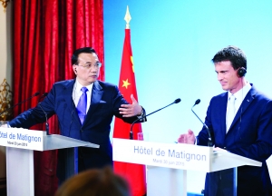 国务院总理李克强当地时间6月30日下午在同法国总理瓦尔斯会谈后共同会见记者时表示,通过发展实体经济扩大市场需求,是应对经济下行压力的良方。推动国际产能合作,把中方和发达国家的优势结合起来,生产关键技术设备,能以较低价格和较高质量满足广大发展中国家需求,带动中国产业升级和发达国家扩大出口。此访期间,中法共同发表开发第三方市场合作协议。两国愿采取多种形式,在核电、高铁等领域开展三方合作,实现互利三赢。 新华社/图文 本版导读: