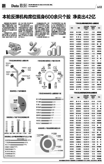 本轮反弹机构席位现身600余只个股 净卖出42亿 2015-07-28 来源:证券时报网 作者: