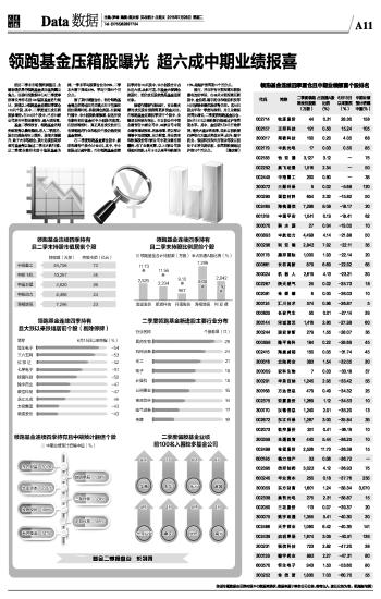 领跑基金压箱股曝光 超六成中期业绩报喜 2015-07-28 来源:证券时报网 作者: