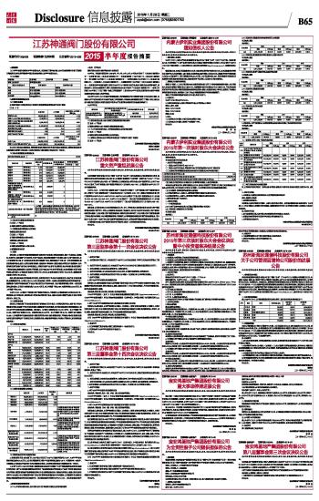 江苏神通阀门股份有限公司2015半年度报告摘要 2015-07-28 来源:证券时报网 作者: