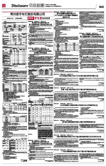 常州星宇车灯股份有限公司2015半年度报告摘要 2015-07-28 来源:证券时报网 作者: