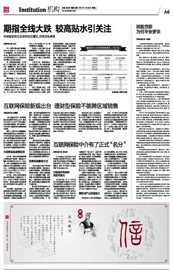 互联网保险新规出台 理财型保险不能跨区域销售 2015-07-28 来源:证券时报网 作者:曾福斌