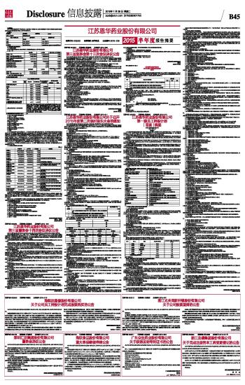 江苏恩华药业股份有限公司2015半年度报告摘要