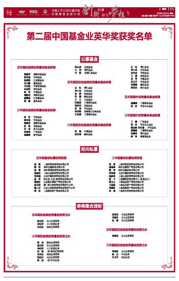 第二届中国基金业英华奖获奖名单 2015-08-03 来源:证券时报网 作者: