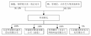 (上接B10版) ■ (十五)2014年6月,欢瑞世纪第六次股权转让 2014年6月25日股东大会决议同意钟君艳、李志强、穆小勇、浙江欢瑞将其所持有的欢瑞世纪118.32万股、40万股、80万股、692.82万股转让给胡万喜、贾士凯、刘颖、李易峰、董可妍、梁振华、贾乃亮、赵丽、南京顺拓、薛美娟、张儒群、孙耀琦、杨幂、顾裕红、赵玉章。本次股份转让情况详见下表: ■ 本次股份转让后的持股情况为: ■ (十六)2014年11月,欢瑞世纪第七次股权转让 2014年11月5日股东大会决议同意股东上海金融发展投资基金(有限合伙)、浙江欢瑞、赵雁将其所持有的欢瑞世纪500万股、500万股、70万股转让给浙江欢瑞、宏图资本、金文华、姚群。本次股份转让情况详见下表: ■ 本次股份转让后的持股情况为: ■ (十七)2014年12月,欢瑞世纪第八次股权转让 2014年12月8日股东大会决议同意股东中国文化产业投资基金(有限合伙)、浙江欢瑞、赵雁、李元宁、毛攀锋、赵玉娜、唐富文将其所持有的欢瑞世纪1000万股、911.19万股、30万股、20万股、20万股、15万股、118.32万股转让给浙江欢瑞、南京魔映、汇文添富、南京汇文、南京顺拓、泓信博瑞、毛攀锋、姚群、梁晶。本次股份转让情况详见下表: ■ 本次股权转让后的持股情况为: ■ (十八)2015年3月,欢瑞世纪第九次股权转让 2015年3月24日股东大会决议同意股东杨乐乐将所持公司50万股股份转让给浙江欢瑞、阳光盛和将所持公司102万股股份转让给浙江欢瑞、浙江欢瑞将所持公司152万股股份转让给弘道晋商,杨乐乐转让价格为25.35元/股、阳光盛和转让价格为20元/股、浙江欢瑞转让价格为27.78元/股。 本次股份转让后的持股情况为: ■ (十九)2015年4月,欢瑞世纪第十次股权转让 2015年4月9日股东大会决议同意股东赵玉章将所持60万股股份转让给冯章茂。本次股权转让价格为25.35元/股。本次股份转让后的持股情况为: ■ (二十)2015年6月,欢瑞世纪第十一次股权转让 2015年6月24日股东大会决议同意股东董可妍将所持欢瑞世纪10万股股份转让给浙江欢瑞,本次股份转让价格为2.5元/股;刘颖将所持10万股股份转让给贾士凯,本次股份转让价格为20元/股;浙江欢瑞将所持52万股股份转让给向勇,本次股份转让价格为27.79元/股。本次股份转让后的持股情况为: ■ (二十一)2015年7月,欢瑞世纪第十二次股权转让2015年7月30日股东大会决议同意股东贾士凯、刘颖、曾嘉、杨幂将所持欢瑞世纪30万股、10万股、50万股、50万股股份转让给浙江欢瑞,本次股份转让情况详见下表: ■ 本次股份转让后的持股情况为: ■ (二十二)2015年8月,欢瑞世纪第十三次股权转让 2015年8月6日股东大会决议同意股东浙江欢瑞将所持欢瑞世纪151.18万股股份转让给北京以渔,本次股份转让价格为27.78元/股。本次股份转让后的持股情况为: ■ 三、股权结构及控制权关系情况 (一)产权控制关系 截至本预案签署日,欢瑞世纪股份结构及产权控制关系如下图所示: ■ (二)实际控制人基本情况 陈援、钟君艳为夫妻关系,其中陈援持有欢瑞世纪2.25%,钟君艳持有欢瑞世纪14.46%,陈援、钟君艳通过浙江欢瑞间接持有欢瑞世纪12.56%,陈援、钟君艳合计持有欢瑞世纪29.27%股权,为欢瑞世纪实际控制人,实际控制人地位最三年未发生变化。截至本预案出具之日,陈援、钟君艳夫妇所持欢瑞世纪股份不存在质押或其他有争议的情况。 四、欢瑞世纪的下属公司情况 截至本预案签署日,欢瑞世纪下属四家子公司,一家分公司,一家办事处,主要情况如下: (一)北京欢瑞世纪演艺经纪有限公司 1、基本情况 ■ 2、历史沿革 (1)2011年11月,北京欢瑞世纪演艺经纪有限公司成立 北京欢瑞世纪演艺经纪有限公司由欢瑞世纪现金出资100万人民币设立。北京润鹏冀能会计师事务所有限责任公司对公司注册资金进行审验,并出具了《验资报告》(京润(验)字[2011]-224128),确认北京欢瑞世纪演艺经纪有限公司的注册资本已全部缴足。 2011年11月17日,取得了北京市工商行政管理局朝阳分局核发的《企业法人营业执照》。北京欢瑞世纪演艺经纪有限公司设立时的股权结构如下表: ■ (2)2015年4月,北京欢瑞世纪演艺经纪有限公司第一次增资 2015年3月2日,北京欢瑞世纪演艺经纪有限公司股东大会决议通过增加注册资本200万元,由欢瑞世纪认缴,变更后的公司注册资本为300万元,并对应修改北京欢瑞世纪演艺经纪有限公司章程。 本次增资后北京欢瑞世纪演艺经纪有限公司股权结构为: ■ 3、主要业务及简要财务数据 北京欢瑞世纪演艺经纪有限公司从事艺人经纪业务,最近三年简要财务数据如下: 单位:元 ■ (二)欢瑞世纪影业有限公司(香港) 1、基本情况 ■ 2、历史沿革 (1)2011年8月,欢瑞世纪影业有限公司成立 2011年8月1日,浙江省发展和改革委员会出具批复文件浙发改外资[2011]887号,同意浙江欢瑞在香港投资影视制作项目,项目内容包括:电影、电视制作、发行、贸易、演员、艺人经纪等业务。 2011年9月29日,浙江欢瑞作为欢瑞世纪影业有限公司唯一股份承购人,承购10,000普通股,面值10,000美元。2011年10月7日,欢瑞世纪影业有限公司设立,香港特别行政区公司注册处出具公司注册证书,证书编号No.1669863。 欢瑞世纪影业有限公司设立时的股权结构如下: ■ (2)2011年10月,欢瑞世纪影业有限公司股权第一次转让 2011年10月18日,浙江欢瑞转让其持有的欢瑞世纪影业有限公司10,000股