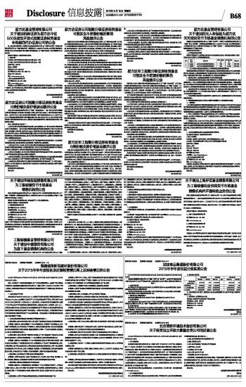 易方达证券公司指数分级证券投资基金 B类份额交易价格波动提示公告 近期,易方达基金管理有限公司(以下简称“本基金管理人”)旗下易方达证券公司指数分级证券投资基金之B类份额(场内简称:证券B,场内代码:502012)二级市场交易价格波动较大, 2015年9月16日,易方达证券公司B类份额在二级市场的收盘价为0.444元,相对于当日0.3714元的基金份额参考净值,溢价幅度达到19.55%。截止2015年9月17日,易方达证券公司B类份额二级市场的收盘价为0.400元,明显高于基金份额参考净值,投资者如果盲目投资,可能遭受重大损失。 为此,本基金管理人提示如下: 1、易方达证券公司B类份额表现为高风险、高收益的特征。由于易方达证券公司B类份额内含杠杆机制的设计,易方达证券公司B类份额参考净值的变动幅度将大于易方达证券公司份额(场内简称:证券分级,场内代码:502010)净值和易方达证券公司A类份额(场内简称:证券A,场内代码:502011)参考净值的变动幅度,即易方达证券公司B类份额的波动性要高于其他两类份额,其承担的风险也较高。易方达证券公司B类份额的持有人会因杠杆倍数的变化而承担不同程度的投资风险。 2、易方达证券公司B类份额的交易价格,除了有份额参考净值变化的风险外,还会受到市场的系统性风险、流动性风险等其他风险影响,可能使投资人面临损失。 3、截至2015年9月17日收盘,易方达证券公司B类份额的基金份额参考净值接近基金合同约定的不定期份额折算阀值。不定期份额折算后,易方达证券公司B类份额的溢价率可能发生较大变化。特提请参与二级市场交易的投资者注意高溢价所带来的风险。 4、截至本公告披露日,易方达证券公司指数分级证券投资基金运作正常。本基金管理人仍将严格按照法律法规及基金合同进行投资运作。 5、截至本公告披露日,易方达证券公司指数分级证券投资基金无其他应披露而未披露的重大信息。本基金管理人仍将严格按照有关规定和要求,及时做好信息披露工作。 6、基金管理人承诺以诚实信用、勤勉尽责的原则管理和运用基金资产,但不保证基金一定盈利,也不保证最低收益。投资者投资于本基金前应认真阅读本基金的基金合同和招募说明书等相关法律文件。 敬请投资者注意投资风险。 特此公告。 易方达基金管理有限公司 2015年9月18日 易方达证券公司指数分级证券投资基金 可能发生不定期份额折算的 风险提示公告 根据《易方达证券公司指数分级证券投资基金基金合同》(以下简称"基金合同")关于基金不定期份额折算的相关约定,当易方达证券公司指数分级证券投资基金(以下简称"本基金")之B类份额的基金份额参考净值小于0.2500元时,易方达证券公司份额(场内简称:证券分级;场内代码502010)、易方达证券公司A类份额(场内简称:证券A;场内代码502011)、易方达证券公司B类份额(场内简称:证券B;场内代码502012)将进行不定期份额折算。 由于近期A股市场波动较大,截至2015年9月17日收盘,易方达证券公司B类份额的基金份额参考净值接近基金合同约定的不定期份额折算阀值,提请投资者密切关注易方达证券公司B类份额近期基金份额参考净值的波动情况。 针对不定期份额折算可能带来的风险,基金管理人特别提示如下: 1、由于易方达证券公司A类份额、易方达证券公司B类份额折算前可能存在折溢价交易情形,不定期份额折算后,易方达证券公司A类份额、易方达证券公司B类份额的折溢价率可能发生较大变化。特提请参与二级市场交易的投资者注意折溢价所带来的风险。 2、易方达证券公司B类份额表现为高风险、高收益的特征,不定期份额折算后其杠杆将恢复至初始杠杆水平,溢价率可能发生较大变化。投资者如果盲目投资,可能遭受重大损失,敬请投资者注意投资风险。 3、由于触发折算阀值当日,易方达证券公司B类份额的参考净值可能已低于阀值,而折算基准日在触发阀值日后才能确定,此折算基准日易方达证券公司B类份额的净值可能与折算阀值0.2500元有一定差异。 4、易方达证券公司A类份额表现为低风险、收益相对稳定的特征,但在不定期份额折算后易方达证券公司A类份额持有人的风险收益特征将发生较大变化,由持有单一的较低风险收益特征易方达证券公司A类份额变为同时持有较低风险收益特征易方达证券公司A类份额与较高风险收益特征易方达证券公司份额的情况,因此易方达证券公司A类份额持有人预期收益实现的不确定性将会增加。 本基金管理人的其他重要提示: 1、根据上海证券交易所的相关业务规则,场内份额数将取整计算(最小单位为1份),舍去部分计入基金资产,持有极小数量易方达证券公司份额、易方达证券公司A类份额、易方达证券公司B类份额的持有人存在折算后份额因为不足1份而被强制归入基金资产的风险。 2、如本基金发生上述不定期份额折算情形,为保证折算期间本基金的平稳运作,本基金管理人可根据上海证券交易所、登记结算机构的相关业务规则,暂停易方达证券公司份额、易方达证券公司A类份额与易方达证券公司B类份额的上市交易、配对转换,以及易方达证券公司份额的申购、赎回、转托管等相关业务。届时本基金管理人将会对相关事项进行公告,敬请投资者予以关注。 投资者若希望了解基金不定期份额折算业务详情,请参阅本基金基金合同及《易方达证券公司指