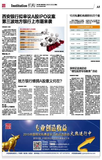 西安银行拟审议A股IPO议案第三波地方银行上市潮来袭 2015-11-12 来源:证券时报网 作者:马传茂