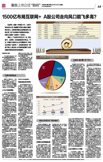 1500亿布局互联网+ A股公司走向风口能飞多高? 2015-11-12 来源:证券时报网 作者:翁健