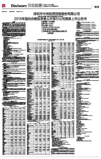 深圳市中洲投资控股股份有限公司2015年面向合格投资者公开发行公司债券上市公告书 2015-11-12 来源:证券时报网 作者: