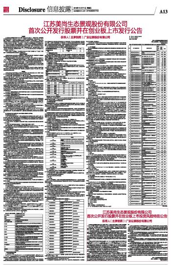 江苏美尚生态景观股份有限公司首次公开发行股票并在创业板上市发行公告