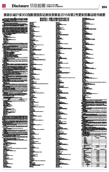 景顺长城沪深300指数增强型证券投资基金2015年第2号更新招募说明书摘要 2015-12-12 来源:证券时报网 作者: