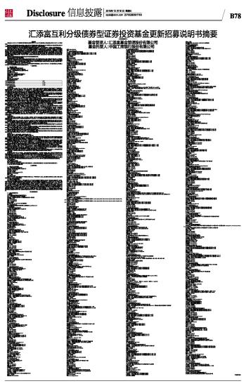 汇添富互利分级债券型证券投资基金更新招募说明书摘要(2015年第2号) 2015-12-16 来源:证券时报网 作者: