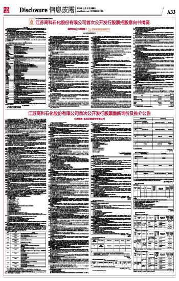江苏高科石化股份有限公司首次公开发行股票招股意向书摘要 2015-12-16 来源:证券时报网 作者: