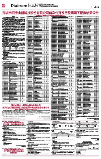 深圳市银宝山新科技股份有限公司首次公开发行股票网下配售结果公告