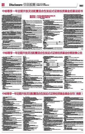 中邮尊享一年定期开放灵活配置混合型发起式证券投资基金份额发售公告 2015-12-18 来源:证券时报网 作者: