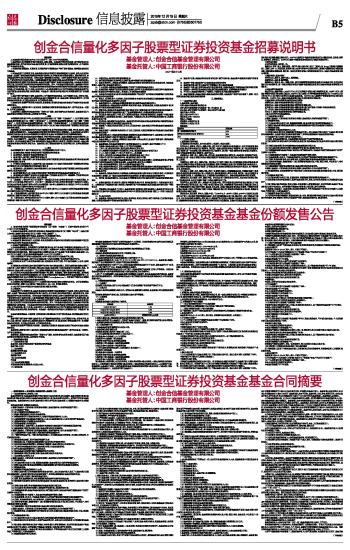 创金合信量化多因子股票型证券投资基金基金份额发售公告 2015-12-19 来源:证券时报网 作者: