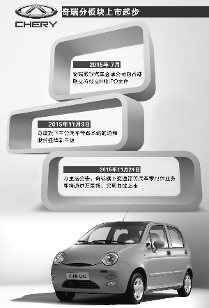 奇瑞敲定十三五规划 启动分板块上市计划公司计划,到2020年新能源汽车产销规模将达20万辆 2015-12-22 来源:证券时报网 作者:童璐