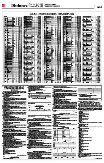 江苏高科石化股份有限公司首次公开发行股票发行公告