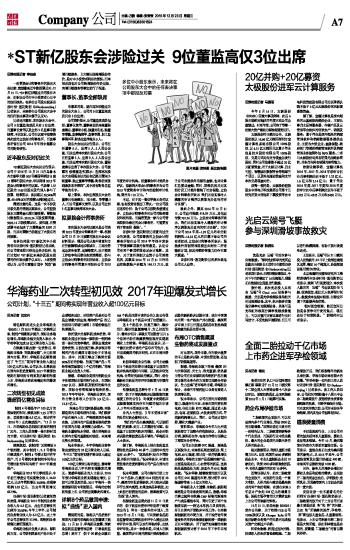 华海药业二次转型初见效 2017年迎爆发式增长公司计划,“十三五”期间将实现年营业收入超100亿元目标