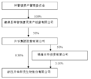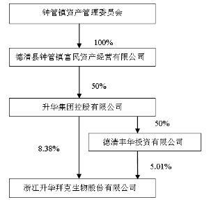 浙江升华拜克生物股份有限公司 简式权益变动报告书 上市公司名称:浙江升华拜克生物股份有限公司 股票上市地点:上海证券交易所 股票简称:升华拜克 股票代码:600226 信息披露义务人:升华集团控股有限公司 住所:浙江省德清县钟管工业区 通讯地址:浙江省德清县钟管工业区 联系电话:0572—8401888 股份权益变动性质:信息披露义务人之控股子公司德清丰华投资有限公司协议转让其所持有的升华拜克股份,致信息披露义务人拥有升华拜克股份权益减少。 签署日期: 2015年12月24日 声 明 一、信息披露义务人依据《中华人民共和国证券法》、《上市公司收购管理办法》、《公开发行证券的公司信息披露内容与格式准则第 15 号——权益变动报告书(2014 年修订)》等法律、法规和规范性文件编制本报告书。 二、信息披露义务人签署本报告书已获得必要的授权和批准,其履行亦不违反信息披露义务人章程或内部规则中的任何条款,或与之相冲突。 三、依据《中华人民共和国证券法》、《上市公司收购管理办法》的规定,本报告书已全面披露信息披露义务人在浙江升华拜克生物股份有限公司(以下简称“升华拜克”)中拥有权益的股份变动情况; 截至本报告书签署之日,除本报告书披露的信息外,上述信息披露义务人没有通过任何其他方式增加或减少其在升华拜克中拥有权益的股份。 四、因信息披露义务人之控股子公司德清丰华投资有限公司通过协议转让方式减持升华拜克5.01%的股份,致信息披露义务人拥有升华拜克股份权益减少,因而披露本报告书。 五、本次权益变动是根据本报告书所载明的资料进行的。除本信息披露义务人外,没有委托或者授权任何其他人提供未在本报告书中列载的信息和对本报告书做出任何解释或者说明。 第一节 释义 在本报告书中,除非文意另有所指,以下简称具有以下含义: ■ 第二节 信息披露义务人介绍 一、升华集团控股有限公司 (一)基本情况 1、名称:升华集团控股有限公司 2、住所:浙江省德清县钟管镇工业区 3、法定代表人:夏士林 4、注册资本:8054.29万元 5、企业类型:有限责任公司 6、经营范围:项目投资与资产管理,投资咨询,经济信息咨询(除证券、金融、期货、保险)服务,投资和开发生物制品、氧化铁颜料、涂料、锆系列产品、机制纸及纸板、其他纸制品、胶合板、装饰面板、其他木制品、纺织品和服装,投资房地产业、酒店业、广告及印刷业,经营国家批准的自营进出口业务,货物进出口业务;金属材料及制品(除贵稀金属)、建筑材料、木材、化工原料及产品(除危险化学品及易制毒品)、纺织原料(除国家统一经营项目外)、重油(工业用)、润滑油、办公设备、汽车(除九座以下乘用车)、汽车及摩托车配件经销,农作物及林木种植(除苗木)。(依法须经批准的项目,经相关部门批准后方可开展经营活动) 7、营业执照注册号:33052100000822 8、法人组织机构代码:733838513 9、税务登记证号:330521733838513 10、经营期限:2001年12月13日至2051年12月12日止 11、股东及持股比例:德清县钟管镇富民资产经营有限公司(持股50%)、夏士林(持股38%)、吴梦根(持股5%)、钱海平(持股2.6%)、德清升腾投资合伙企业(有限合伙)(持股1.80%)、鲍希楠(持股1.1%)、王菊平(持股0.5%)、王锋(持股0.5%)、罗坝塘(持股0.5%)。 12、通讯地址:浙江省德清县钟管镇工业区 (二)本次权益变动前信息披露义务人相关产权及控制关系图 ■ (三)信息披露义务人董事及主要负责人情况 ■ 二、信息披露义务人持有其他上市公司股权的情况 截止本报告书签署之日,信息披露义务人没有在境内、境外其他上市公司拥有权益的股份达到或超过该公司已发行股份5%的情况。 第三节 权益变动的目的 信息披露义务人减持目的:信息披露义务人之控股子公司丰华投资基于自身发展需要,减持其持有的升华拜克5.01%股份。本次权益变动后,信息披露义务人之控股子公司丰华投资不再持有升华拜克股份。 信息披露义务人不排除在未来12个月内继续减持其在上市公司中拥有权益股份的可能,并将按照相关法律法规履行信息披露义务。 第四节 权益变动方式 一、本次股份变动基本情况 信息披露义务人之控股子公司丰华投资通过协议转让方式减持其持有的升华拜克5.01%的股份。 二、本次权益变动的结果 本次权益变动前, 信息披露义务人直接持有升华拜克91,800,000股股份,占升华拜克股份总数的8.38%,信息披露义务人之控股子公司丰华投资持有升华拜克54,810,000股股份,占升华拜克股份总数的5.01%,信息披露义务人持有丰华投资50%的股权。本次权益变动后,信息披露义务人持有升华拜克8.38%股份,信息披露义务人之控股子公司丰华投资不再持有升华拜克股份。 第五节 前六个月内买卖上市交易股份的情况 在本报告书披露前六个月内,信息披露义务人不存在通过上海证券交易所买卖升华拜克股票情况。 在本报告书披露前六个月内,信息披露义务人协议转让上市公司股份的情况如下: 2015年6月5日,信息披露义务人与沈培今签署《股份转让协议》,信息披露义务人将其持有的升华拜克15%的股份以协议方式转让给沈培今,2015年6月16日,前述股份办理完成过户登记手续。 2015年6月23日,信息披露义务人分别与虞军、陆利斌、周文彬签署《股份转让协议》,信息披露义务人向虞军、陆利斌、周文彬转让其持有的升华拜克4.83%