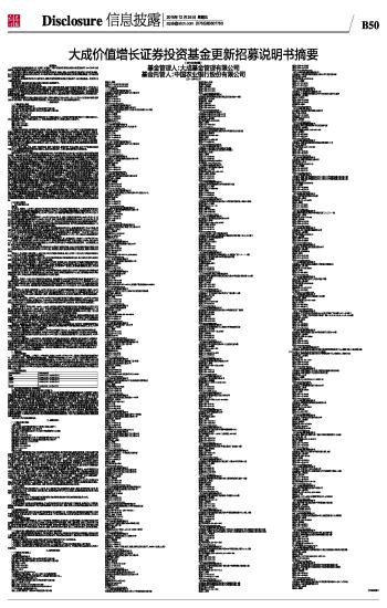 大成价值增长证券投资基金更新招募说明书摘要(2015年第2期) 2015-12-25 来源:证券时报网 作者: