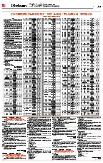 北京乾景园林股份有限公司首次公开发行股票网下发行结果及网上中签率公告
