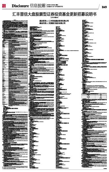 汇丰晋信大盘股票型证券投资基金更新招募说明书(2015年第3号) 2015-12-28 来源:证券时报网 作者: