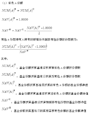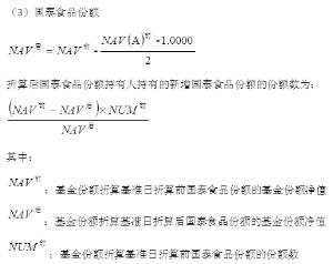 根据《国泰国证食品饮料行业指数分级证券投资基金基金合同》(简称“基金合同”),及深圳证券交易所和中国证券登记结算有限责任公司的相关业务规定,国泰国证食品饮料行业指数分级证券投资基金(简称“本基金”)将以2016年1月4日为基准日办理定期份额折算业务。相关事项提示如下: 一、基金份额折算基准日 根据基金合同的规定,定期份额折算基准日为每个会计年度(除基金合同生效日所在会计年度外)第一个工作日。本次定期份额折算的基准日为2016年1月4日。 二、基金份额折算对象 基金份额折算基准日登记在册的食品A份额(基金代码:150198,基金场内简称:食品A)、国泰食品份额(基金代码:160222,基金场内简称:国泰食品)。 三、基金份额折算方式 每个会计年度第一个工作日为基金份额折算基准日,本基金将在该日对食品A份额进行约定收益的定期份额折算,国泰食品份额的基金份额净值也相应的进行调整。在基金份额折算前与折算后,食品A份额和食品B份额的份额配比保持1:1的比例。 折算前的食品A份额持有人,以食品A份额在基金份额折算基准日的基金份额净值超出本金1.0000元部分,获得新增国泰食品份额的份额分配。折算不改变食品A份额持有人的资产净值,其持有的食品A份额的基金份额净值折算调整为1.0000元、份额数量不变,相应折算增加场内国泰食品份额。 折算前的国泰食品份额的基金份额持有人,以每2份国泰食品份额,按1份食品A份额的份额分配,获得新增国泰食品份额。持有场外国泰食品份额的持有人将按前述折算方式获得新增场外国泰食品份额;持有场内国泰食品份额的持有人将按前述折算方式获得新增场内国泰食品份额。折算不改变国泰食品份额持有人的资产净值。 折算不改变食品B份额持有人的资产净值,其持有的食品B份额的基金份额净值及份额数量不变。 按照上述折算方法,可能会给基金份额持有人的资产净值造成微小误差,视为未改变基金份额持有人的资产净值。 有关计算公式如下: ■ 食品 A份额折算新增的场内国泰食品份额数取整计算(最小单位为1 份),不足 1 份的零碎份,按各个零碎份从大到小的排序,依次向相应的基金份额持有人记增1 份,直到所有零碎份的合计份额分配完毕。 (2)食品B份额 每个会计年度的定期份额折算不改变食品B份额的基金份额净值及其份额数。 ■ 国泰食品份额的场外份额经折算后的份额数采用截位法保留到小数点后两位,由此产生的误差计入基金财产;国泰食品份额的场内份额经折算后的份额数取整计算(最小单位为1 份),不足1份的零碎份,按各个零碎份从大到小的排序,依次向相应的基金份额持有人记增1份,直到所有零碎份的合计份额分配完毕。 四、基金份额折算期间的基金业务办理 1、定期份额折算基准日(即2016年1月4日),本基金暂停办理申购、赎回、转托管(包括场外转托管、跨系统转托管,下同)业务、配对转换业务;食品A、食品B正常交易。当日晚间,基金管理人计算当日基金份额净值及份额折算比例。 2、定期份额折算基准日后的第一个工作日(即2016年1月5日),本基金暂停办理申购、赎回、转托管、配对转换业务,食品A暂停交易、食品B正常交易。当日,本基金注册登记人及基金管理人为持有人办理份额登记确认。 3、定期份额折算基准日后的第二个工作日(即2016年1月6日),基金管理人将公告份额折算确认结果,持有人可以查询其账户内的基金份额。当日,本基金恢复办理申购、赎回、转托管、配对转换业务。食品A将于2016年1月6日上午9:30~10:30暂停交易一小时,并于当日10:30恢复交易,食品B正常交易。 五、重要提示 1、根据《深圳证券交易所证券投资基金交易和申购赎回实施细则》第十一条的规定,2016年1月6日食品A复牌首日即时行情显示的前收盘价为2016年1月5日的食品A的份额净值(四舍五入至0.001 元)。由于食品A折算前可能存在折溢价交易情形,折算前的收盘价扣除2015年约定收益后与2016年1月6日的前收盘价可能有较大差异,1月6日当日可能出现交易价格大幅波动的情形,敬请投资者注意投资风险。 2、由于食品A份额表现为预期风险和预期收益较低的特征,当发生合同规定的定期份额折算时,折算前的食品A份额持有人,以食品A份额在基金份额折算基准日的基金份额净值超出本金1.0000元部分,获得新增国泰食品份额的份额分配。折算不改变食品A份额持有人的资产净值,其持有的食品A份额的基金份额净值折算调整为1.0000元、份额数量不变,相应折算增加场内国泰食品份额。因此,持有人的风险收益特征将发生一定的变化,由持有单一的较低风险收益特征份额变为同时持有较低风险收益特征的食品A份额与较高风险收益特征的国泰食品份额的情况。由于国泰食品份额为跟踪国证食品饮料行业指数的基础份额,其份额净值将随市场涨跌而变化,因此原食品A份额持有人预期收益的实现存在一定的不确定性,可能会承担因市场下跌而遭受损失的风险。请投资者认真阅读本基金的基金合同和招募说明书了解相关内容。 3、由于食品A份额新增份额折算成国泰食品基金份额的场内份额数和国泰食品基金份额的场内份额经折算后的份额数取整计算(最小单位为1 份),不足1份的零碎份,按各个零碎份从大到小的排序,依次向相应的基金份额持有人记增1份,直到所有零碎份的合计份额分配完毕。持有较少食品A份