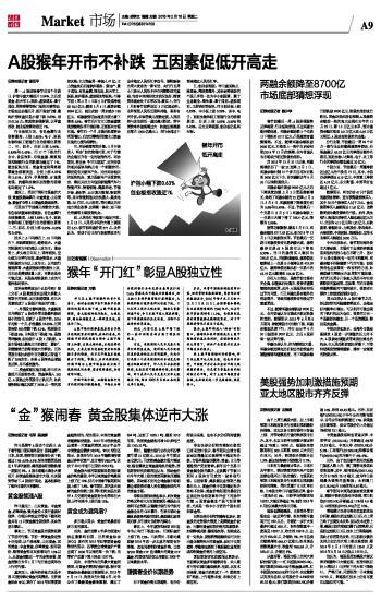A股猴年开市不补跌 五因素促低开高走