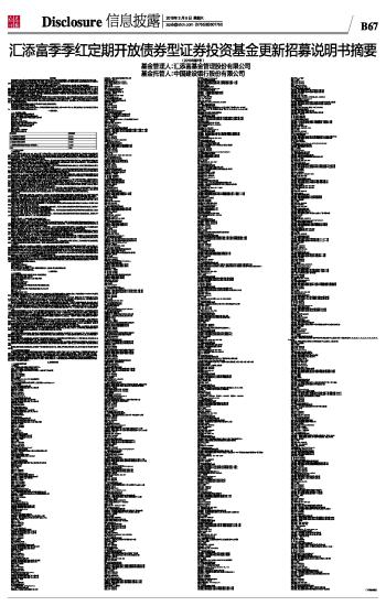 汇添富季季红定期开放债券型证券投资基金更新招募说明书摘要