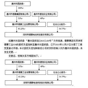 一、重要提示 本年度报告摘要来自年度报告全文,为全面了解本公司的经营成果、财务状况及未来发展规划,投资者应当到证监会指定媒体仔细阅读年度报告全文。 董事、监事、高级管理人员异议声明 ■ 声明 除下列董事外,其他董事亲自出席了审议本次年报的董事会会议 ■ 非标准审计意见提示 □ 适用 √ 不适用 董事会审议的报告期普通股利润分配预案或公积金转增股本预案 √ 适用 □ 不适用 是否以公积金转增股本 □ 是 √ 否 公司经本次董事会审议通过的普通股利润分配预案为:以2015年12月31日的公司总股本为基数,向全体股东每10股派发现金红利1.5元(含税),送红股0股(含税),不以公积金转增股本。 董事会决议通过的本报告期优先股利润分配预案 □ 适用 □ 不适用 公司简介 ■ 二、报告期主要业务或产品简介 公司为控股型企业,主要围绕移动电源产业链进行业务布局,其中惠州电池主营中小型锂电池封装集成业务,惠州蓝微主营中小型移动电源管理系统业务,惠州新源主营大型动力电池、储能电池等电源管理系统及封装集成业务。目前公司在中小型电源管理系统暨封装细分市场处于领先地位。 2015年,以智能手机、平板电脑、台式及笔记本电脑为代表的消费电子行业的增速开始放缓,部分产品甚至出现下滑。IDC发布报告称:2015年全球智能手机发货量达到14.33亿部, 与2014年相比增长10%;全球平板电脑发货量为2.068亿部,与2014年相比下滑10.1%;全球台式及笔记本电脑发货量2.762亿台,与2014年相比下滑10.4%。由于技术进步和成本下降,电动工具、电动自行车等产业保持了快速发展的势头。新能源汽车产业更是在国家产业政策、地方政府大力扶持以及产品技术不断成熟的大背景下呈现出高速增长的态势。中汽协最新数据显示:2015年中国新能源汽车产销量分别为34.05万辆和33.11万辆,同比增长3.3倍和3.4倍。中国已经成为全球最大的新能源汽车市场。 三、主要会计数据和财务指标 1、近三年主要会计数据和财务指标 公司是否因会计政策变更及会计差错更正等追溯调整或重述以前年度会计数据 □ 是 √ 否 单位:人民币元 ■ 2、分季度主要会计数据 单位:人民币元 ■ 上述财务指标或其加总数是否与公司已披露季度报告、半年度报告相关财务指标存在重大差异 □ 是 √ 否 四、股本及股东情况 1、普通股股东和表决权恢复的优先股股东数量及前10名股东持股情况表 单位:股 ■ 2、公司优先股股东总数及前10名优先股股东持股情况表 □ 适用 √ 不适用 公司报告期无优先股股东持股情况。 3、以方框图形式披露公司与实际控制人之间的产权及控制关系 ■ 五、管理层讨论与分析 1、报告期经营情况简介 2015年,在董事会的领导下,公司经营管理团队根据既定的战略规划,积极完善产业布局,坚持技术创新和优化产品结构,应对激烈的市场竞争环境。报告期内整体经营状况良好,运营平稳。 截至2015年12月31日,公司合并营业收入为84.34亿元,完成年度计划的120.49%,同比增长32.00%。主要产品年实际销售及计划达成情况如下:电源保护产品实现销售收入34.61亿元,完成年度计划的136.75%;二次组合电池实现销售收入73.33亿元,完成年度计划120.45%(相关数据包含向内部公司销售额)。 经大华事务所审计,2015年度本公司总资产为34.03亿元,合并后实现利润总额3.91亿元,同比下降1.95%;实现净利润3.08亿元,同比下降1.53%;其中归属于上市公司股东的净利润2.30亿元,同比下降1.84%。 报告期内,公司开展的重点工作如下: 市场开拓方面,公司进一步加大市场开拓力度,客户拓展取得积极成果。在消费类电子产品业务方面,成功导入国际排名前列的二家国内智能手机客户,并将于2016年开始批量出货,着力开拓笔记本电池封装业务,成功导入某国际高端客户并实现小批量出货;在电动工具业务方面,国际一线客户业务关系进一步加强,销售收入持续增长,在智能控制业务方面,与宝时得、莱克合作开发的相关产品实现量产;在动力电池电源管理系统业务方面,已和行业一线电芯厂商及整车企业展开战略合作洽谈。 技术开发方面,公司加大了对新业务、新技术的研发投入,2015年研发投入达14,178.77万元,惠州蓝微继电动工具电源管理及控制业务取得突破性进展之后,横向拓展智能家居及控制领域,并建立了完善的研发平台;惠州电池积极开展笔记本电池业务和电动自行车电池业务的研发,均已批量出货,此外公司还成功开发汽车启动电源产品。报告期内,公司控股子公司申请专利54项,新获授权专利32项,参与了有关“移动通信终端使用快速充电技术要求和测试方法”、“便携式数字设备用移动电源通用规范”、“无人飞行器用锂离子电池及电池组技术要求”等国家或地方标准的制定。 产业布局方面,公司董事会积极推进落实《公司战略规划(2014-2020)》,加快公司的产业布局,实现公司对大型、中型、小型电源管理系统及封装集成业务的全覆盖。2015年6月1日,经公司2015年第二次临时股东大会审议通过,公司控股子公司惠州蓝微、惠州电池与德赛西威、CHOI HONG BEOM先生成立了主营业务为大型动力电池、储能电池等电源管理系统及封装集成业务的新公司,其中惠州蓝微、惠州电池分别持股56%和19%。2015年7月22日,新公司办理完工商登记手续,并取得由惠州市工商行政管理局颁发的《营业执照》。新公司名称为惠州市蓝