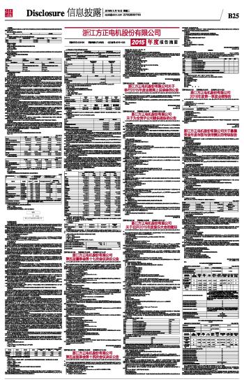 浙江方正电机股份有限公司2015年度报告摘要 2016-03-15 来源:证券时报网 作者: