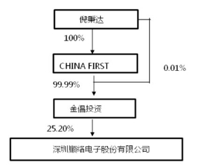 深圳顺络电子股份有限公司 简式权益变动报告书 上市公司名称:深圳顺络电子股份有限公司 股票上市地点:深圳证券交易所 股票简称:顺络电子 股票代码:002138 公告编号:2016-004 信息披露义务人名称:金倡投资有限公司 公司住所:香港九龙新码头街38号翔龙湾第5座7楼G室 通讯地址:香港九龙新码头街38号翔龙湾第5座7楼G室 股份变动性质:协议转让导致股份减少 签署日期:二○一六年一月二十一日 信息披露义务人声明 一、信息披露义务人依据《中华人民共和国证券法》、《上市公司收购管理办法》及《公开发行证券的公司信息披露内容与格式准则第15号-权益变动报告书》及相关法律、法规编写本报告书。 二、信息披露义务人签署本权益变动报告书已获得必要的授权和批准,其履行亦不违反信息披露义务人章程或内部规则中的任何条款,或与之相冲突。 三、依据《中华人民共和国证券法》、《上市公司收购管理办法》的规定,本权益变动报告书已全面披露了信息披露义务人在深圳顺络电子股份有限公司拥有权益的股份变动情况。 截至本报告书签署之日,除本报告书披露的持股信息外,信息披露义务人没有通过其他任何方式增加或减少其在深圳顺络电子股份有限公司拥有权益的股份。 四、本报告相关的权益变动须经深圳证券交易所审查批准后方可生效。 五、本次权益变动是根据本报告书所载明的资料进行的。信息披露义务人没有委托或者授权其他任何人提供未在本报告书列载的信息和对本报告书做出任何解释或者说明。 释 义 本权益变动报告书中,除非另有所指,下列词语具有以下含义: ■ 第一节 信息披露义务人介绍 一、信息披露义务人基本情况 1. 名称:金倡投资有限公司 2. 注册地:香港九龙新码头街38号翔龙湾第5座7楼G室 3. 董事:倪秉达、郭成玲 4. 注册编号:828042 5. 注册资本:10,000港元 6. 企业类型及经济性质:有限公司 7. 主要经营范围:投资和贸易 8. 成立日期:2003年1月3日 9. 主要股东:China First持股99.99%,倪秉达持股0.01% 10. 通讯地址:香港九龙新码头街38号翔龙湾第5座7楼G室 11. 联系电话、传真:00852-27704329 二、信息披露义务人董事及法定代表人情况 ■ 三、信息披露义务人与本公司股权控制关系 倪秉达先生为本公司实际控制人、董事,同时也是金倡投资的董事长和China First董事长。本次权益变动前,信息披露义务人股权控制及持股情况如下: ■ 四、信息披露义务人持有、控制其他上市公司5%以上的发行在外股份的情况 截止本报告签署之日,信息披露义务人在境内、境外均未持有、控制其他上市公司5%以上的发行在外股份。 第二节 权益变动目的 一、本次权益变动的目的 本次变动目的为确保顺络电子继续长期稳定发展,进一步优化公司股权结构。 二、信息披露义务人拥有的公司股份未来12个月变动情况 信息披露义务人未来12个月在不影响公司经营持续稳定的前提下,可能继续向顺络电子的董事、高管转让其拥有权益的股份,并将按照相关法律、法规的规定及时履行信息披露义务。 第三节 权益变动方式 一、股份变动基本情况 金倡投资拟通过协议转让方式,向顺络电子董事长袁金钰转让4,000万股股票。本次权益变动前,信息披露义务人共持有顺络电子186,719,980股股票,占顺络电子总股本的25.20%。本次权益变动后,信息披露义务人共持有顺络电子146,719,980股股票,占顺络电子总股本的19.80%,具体如下表: ■ 二、股份转让协议的主要内容 (一)当事人: 转让方:金倡投资 受让方:袁金钰 (二)标的股份 本次转让的标的股份为金倡投资持有的公司4,000万股无质押、无限售的流通股份,占公司股份总数的5.40%。 (三)转让价格 转让股份的价格按人民币9.78元/股计算,总价格为39,120万元(即叁亿玖仟壹佰贰拾万圆整);转让股份的价格以本协议签署前一交易日即2016年1月20日顺络电子股票收盘价格10.86元/股的90%确定。 (四)股份交割 转让方应当在本协议生效之日起2个月内标的股份过户到受让方名下。 (五)协议签订日期及生效条件 协议签订日期为2016年1月21日,自经深圳证券交易所审查同意之日起生效。 (六)股份限售及其他约定 1、自本次转让相关股份登记过户之日起,受让方应遵守国家法律法规、中国证监会及深圳证券交易所相关规定,不得违规减持其所持有的公司股份。 2、自本次转让相关股份登记过户之日起2年内,以及本次协议相关款项全部付清后2年内,袁金钰先生不主动申请从公司离职,并根据公司股东大会、董事会的选举、聘任勤勉、忠实履行相关职责。 三、本次拟转让股份、信息披露义务人所持公司股份的权利限制的情况 截至本报告签署之日,金倡投资持有公司股份数为186,719,980股,全部为无限售流通股,占公司目前总股本的25.20%,其中处于质押状态的股份累计数为17,485万股,占其所持公司股份总数的93.64%,占公司总股本的23.60%,无质押状态的股份为11,869,980股,占公司总股本的1.60%。根据双方签订的《股份转让协议》,金倡投资应当及时办理股份质押解除手续,并确保在股份交割时无质押状态的股份数量不低于4,000万股。 四、权益变动对顺络电子控股权的影响 本次权益变动后,金倡投资仍持有顺络电子146,719,980股,占公司总股本的19.80%,任是公司的第一大股东,倪秉达仍然是公司的实际控制人,本次权益变动不会导致顺络电子的控制权发生变更。 截至本