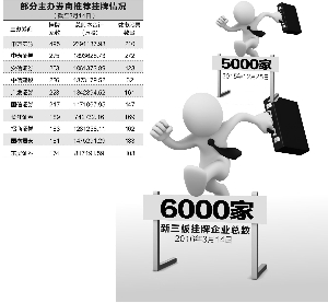 新三板挂牌企业突破6000家 申万宏源领跑挂牌业务主办券商对新三板业务重视程度加强,业务侧重差别明显 2016-03-15 来源:证券时报网 作者:赵春燕