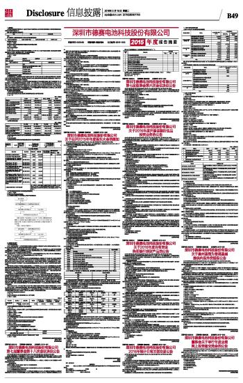 深圳市德赛电池科技股份有限公司2015年度报告摘要