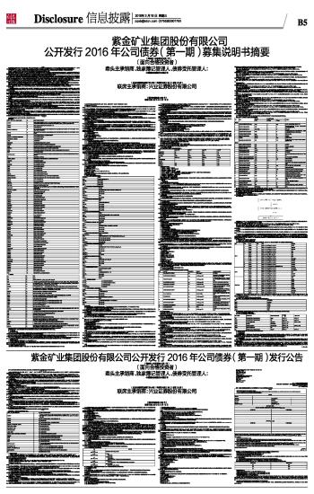 紫金矿业集团股份有限公司公开发行2016年公司债券(第一期)募集说明书摘要 2016-03-16 来源:证券时报网 作者: