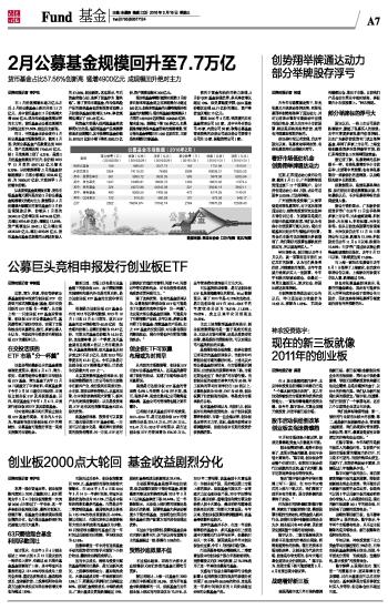 2月公募基金规模回升至7.7万亿 货币基金占比57.56%创新高 猛增4900亿元 成规模回升绝对主力 2016-03-16 来源:证券时报网 作者:李沪生
