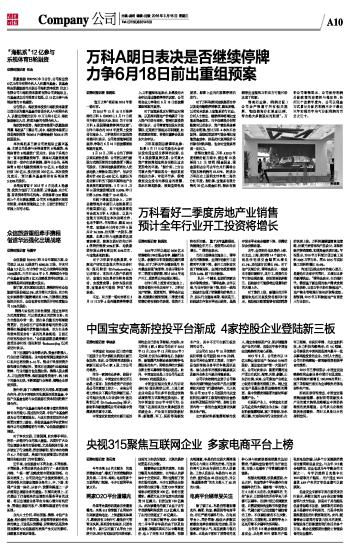万科看好二季度房地产业销售预计全年行业开工投资将增长