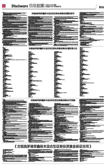 交银施罗德荣鑫保本混合型证券投资基金基金合同摘要 2016-03-18 来源:证券时报网 作者: