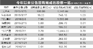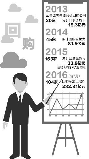 年内104家公司拟最高回购233亿 各打各的算盘 2016-03-19 来源:证券时报网 作者:钟恬
