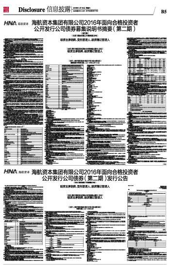 15、本公告仅对本期债券发行的有关事宜进行说明,不构成针对本期债券的任何投资建议。投资者欲详细了解本期债券发行情况,请仔细阅读《海航资本集团有限公司2016年面向合格投资者公开发行公司债券(第二期)募集说明书》,有关本次发行的相关资料,投资者亦可到深圳证券交易所网站(http://www.szse.cn/)、巨潮资讯网(http://www.cninfo.com.cn/)查询。
