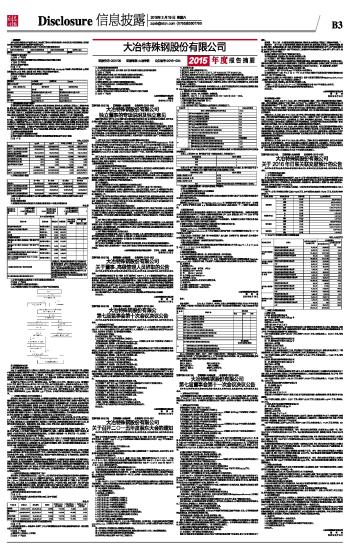 大冶特殊钢股份有限公司2015年度报告摘要 2016-03-19 来源:证券时报网 作者: