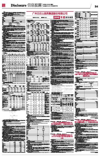 广州白云山医药集团股份有限公司2015年度报告摘要 2016-03-19 来源:证券时报网 作者: