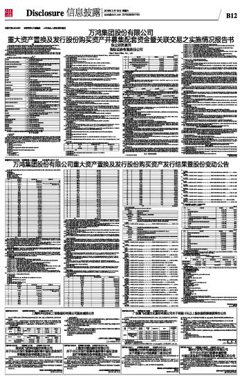 万鸿集团股份有限公司重大资产置换及发行股份购买资产发行结果暨股份变动公告