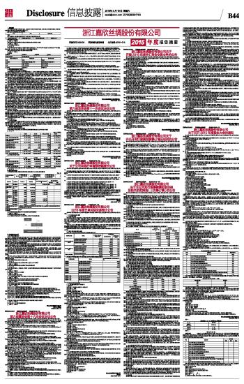 浙江嘉欣丝绸股份有限公司2015年度报告摘要
