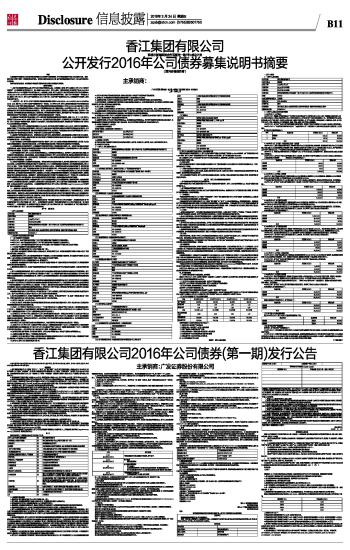 香江集团有限公司公开发行2016年公司债券募集说明书摘要 2016-03-24 来源:证券时报网 作者: